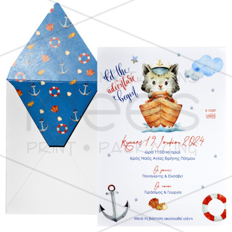 Προσκλητήριο βάπτισης γατούλης καπετάνιος