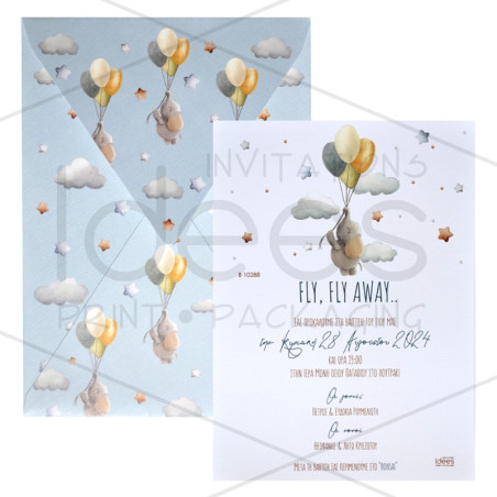 Προσκλητήριο βάπτισης ελεφαντάκι με μπαλόνια